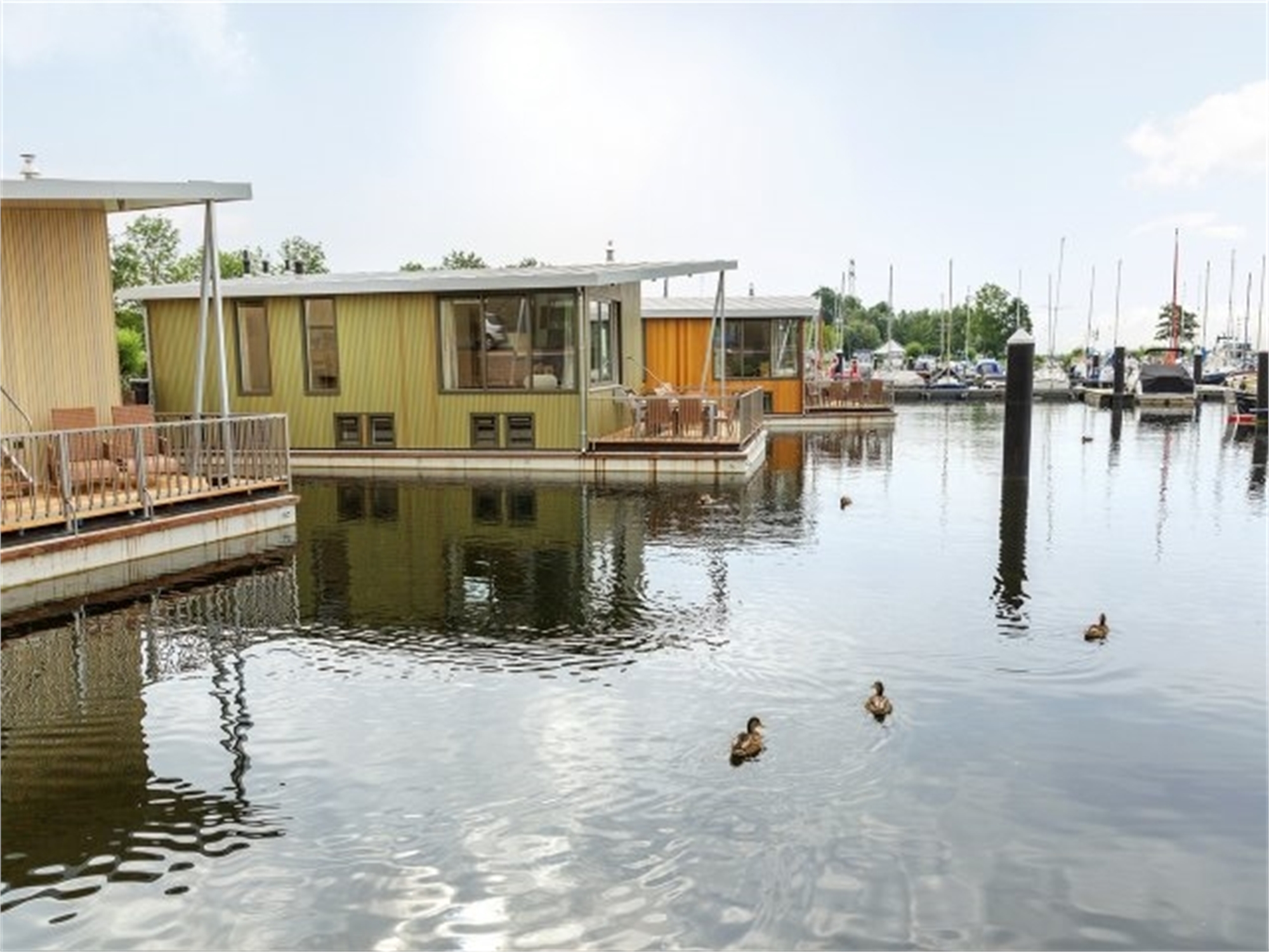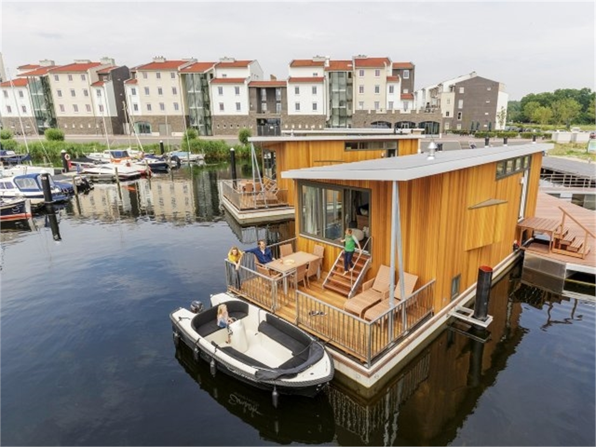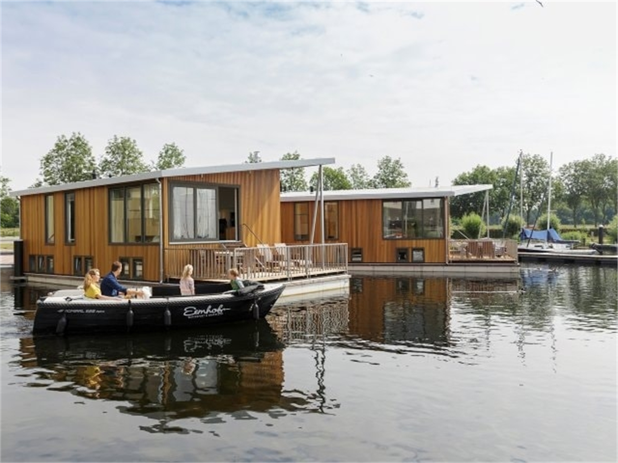 Zo dicht bij het water kom je zelden. In de woonboot geniet je van een comfortabel interieur en een heerlijk privédek die natuurlijk uitkijkt over het meer.