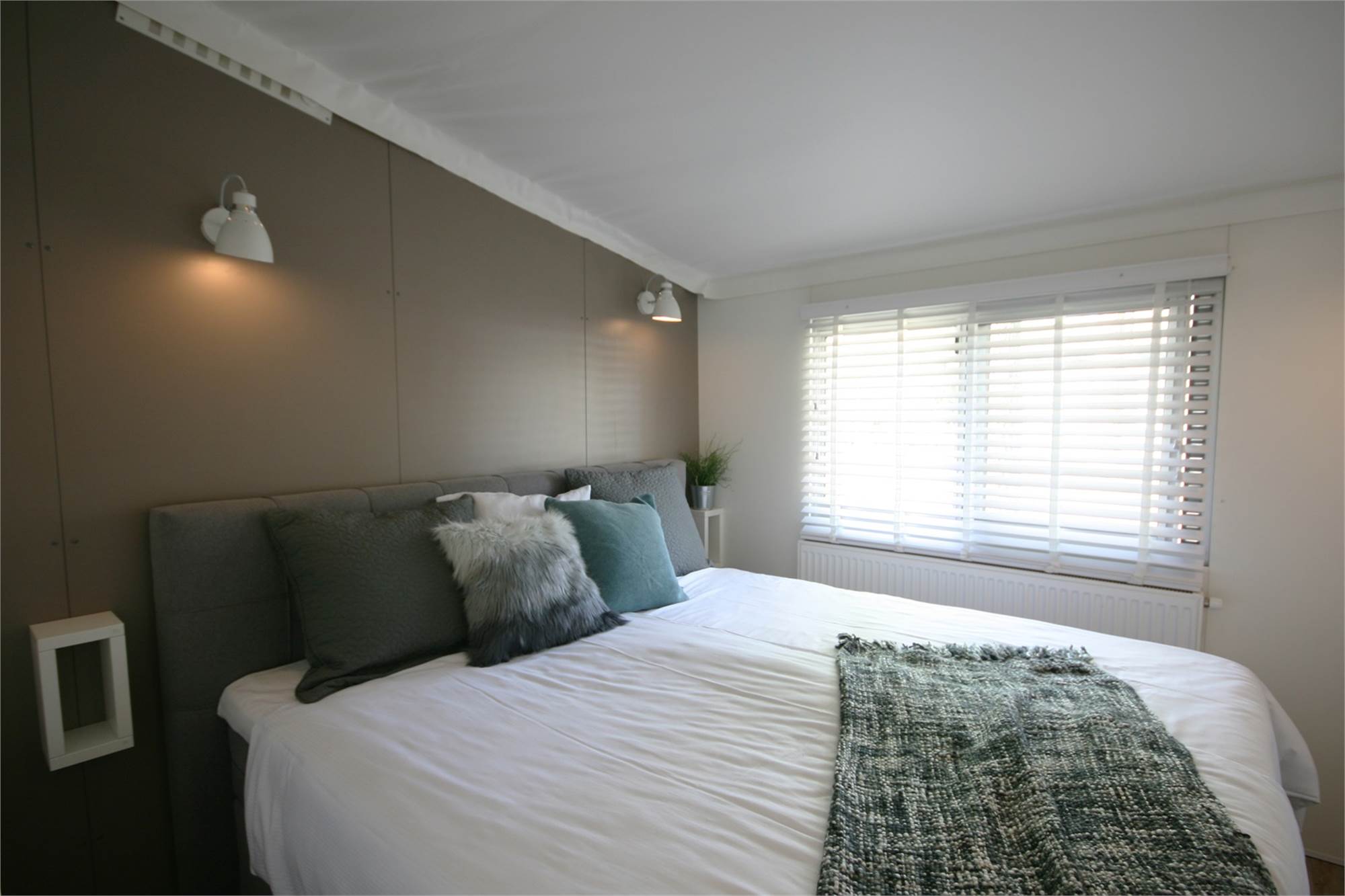 - Slaapkamer met twee 1-persoons boxspring bedden