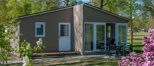 Dit chalet is geschikt voor 4 personen en heeft een woonkamer met eethoek en open keuken met vaatwasser. Via de openslaande deuren komt u op de veranda en het terras met tuinmeubilair. De woning beschikt over 2 slaapkamers, beide met boxspringbedden en een badkamer met douche, wastafel en toilet. U maakt gratis gebruik van wifi.