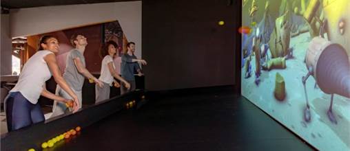 Dankzij het grote scherm waan je je in een interactieve spelwereld. Ga alleen of in teamverband de strijd aan om het puntenrecord te verslaan.