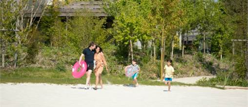 Geniet van de zon en ga zwemmen in dit meer dat natuurlijk gefilterd wordt door de planten, maak zandkastelen op het strand of ga gewoon zonnebaden in een ligstoel.